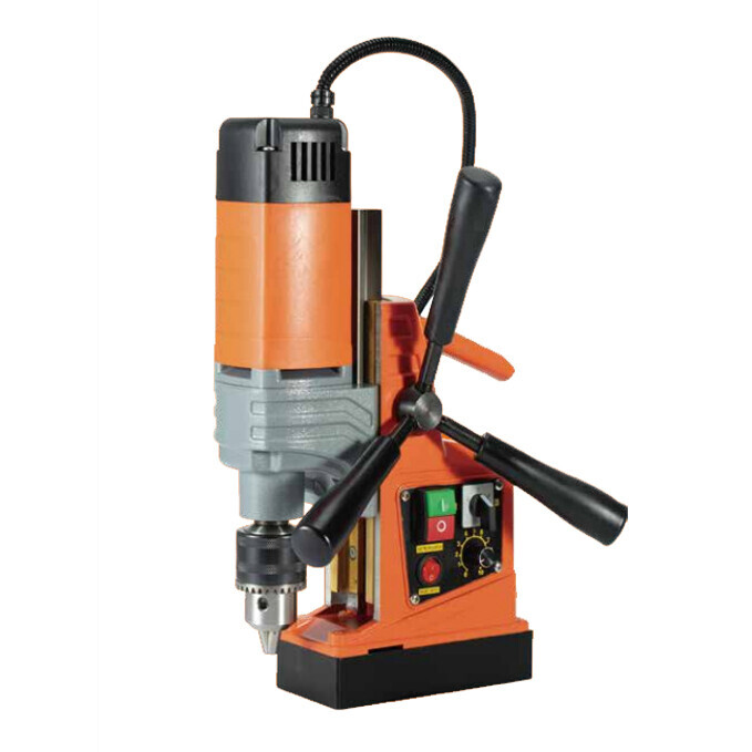 Taladro magnético VD13RE con 13 mm de diámetro máximo de perforación, 220 V de potencia y 1000 W de potencia nominal. Velocidad de 0-700r/min y fuerza magnética de 11000N. Ideal para uso industrial.